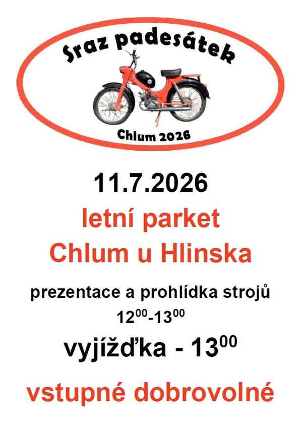 Moto sraz "50" Kdy: 11. 7. 2026 13:00 Kraj: Pardubický Typ akce: ostatní Zpět na kalendář Zobrazit mapu